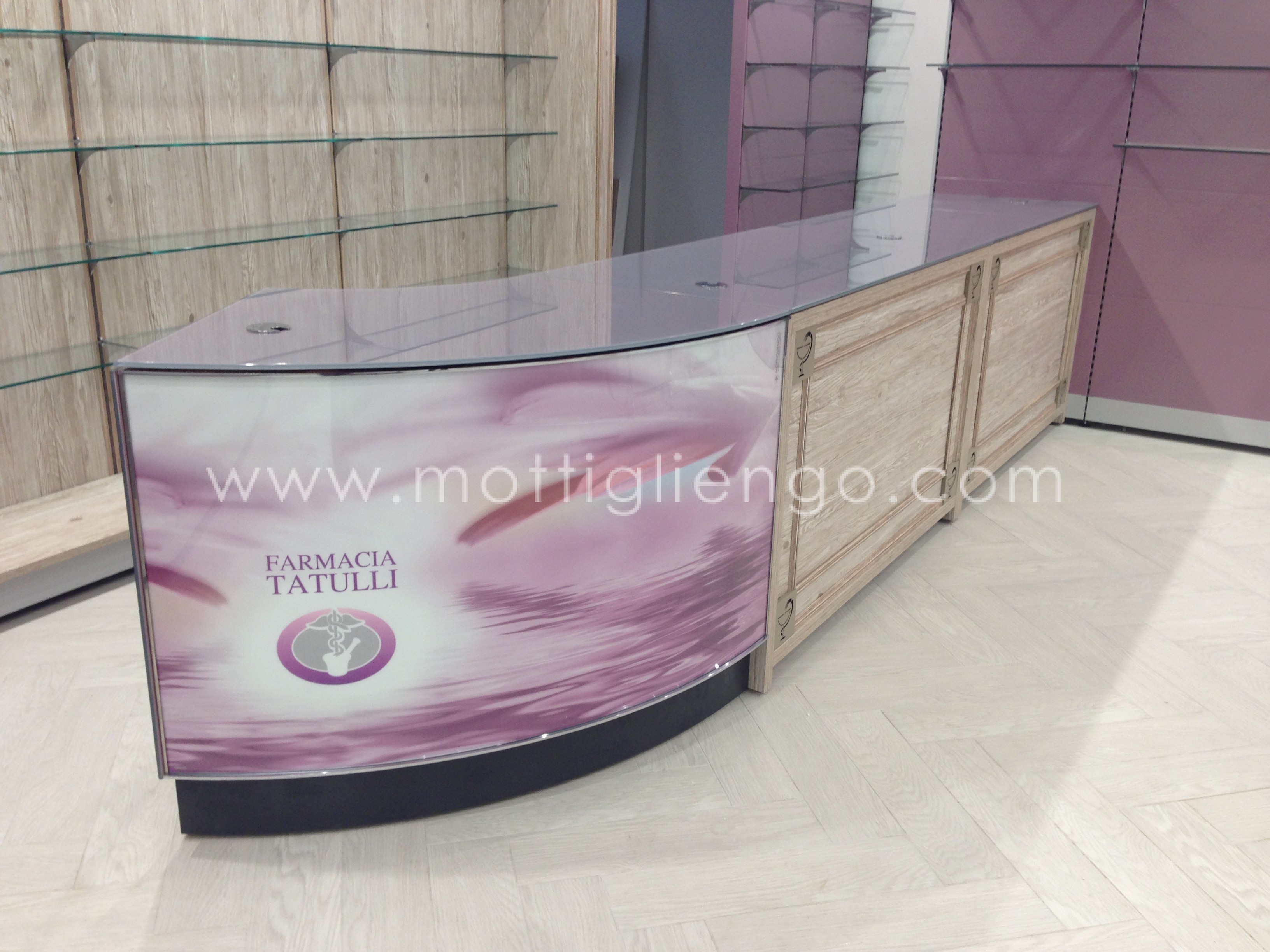 “L’azienda Mottigliengo ha rinnovato con successo la Farmacia Tatulli di Molfetta (BA), che si è trasferita in una nuovo contesto urbanistico. Il sistema di arredo Chemsystem nelle eleganti tonalità del grigio seta e lilla, impreziosito dall’abbinamento con mobili dalla serie CLASSIC in legno “pino Savoia”, ha contribuito a creare un ambiente funzionale e raffinato ricco di dettagli sofisticati. Lo stile della Farmacia Tatulli, risulta attraente per tutti i Dottori farmacisti che vogliano riscoprire l’eleganza della classicità senza rinunciare alla funzionalità del design.